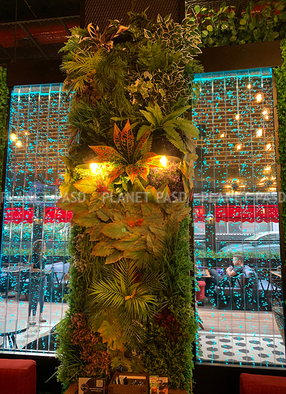 Yapay bitki ve metal dokunun ağırlıkta olduğu Big City Güneşli’nin tasarımına farklı bir hareket eklenmesi talebi üzerine keşife gittik. Zaten keyifli olan ambiyanslarına dokunurken dikkatli olmak gerekiyordu. Baloncuk Duvarını® nı yerleştireceğimiz yer neresi olmalı diye beyin fırtınası yaparken mekanda zaten yer bulmuş olan yapay bitkilerle birleşen bir tasarım olması ürünün tasarımla bütünlük sağlayacağı düşüncesini oluşturdu. Ve tabii ortaya en ilgi çeken işlerimizden biri çıkmış oldu.. Hem mekan sahibi, hem biz, hem müşteriler hem de sosyal medyamızdan bizi takip eden binlerce kişi çok keyif aldı..